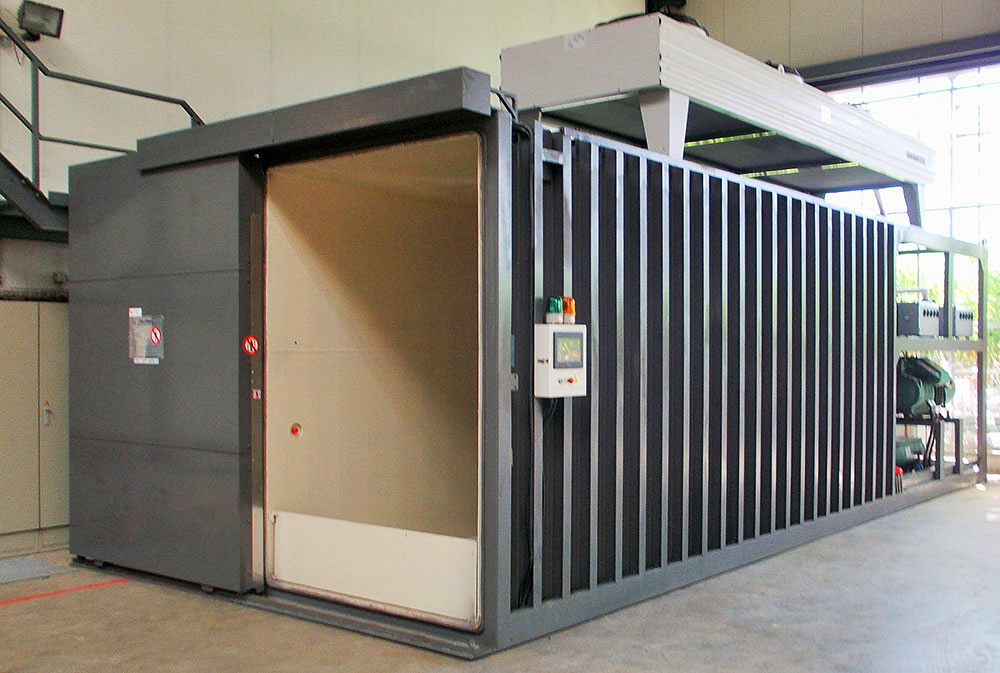 Located inside the vacuum chamber, the condenser system condenses water vapor, ensuring dry air exits towards the pumps. Outside the chamber, a refrigeration system cools the condenser. Compressors for this heat exchange process are supplied by Bitzer or Hanbell.